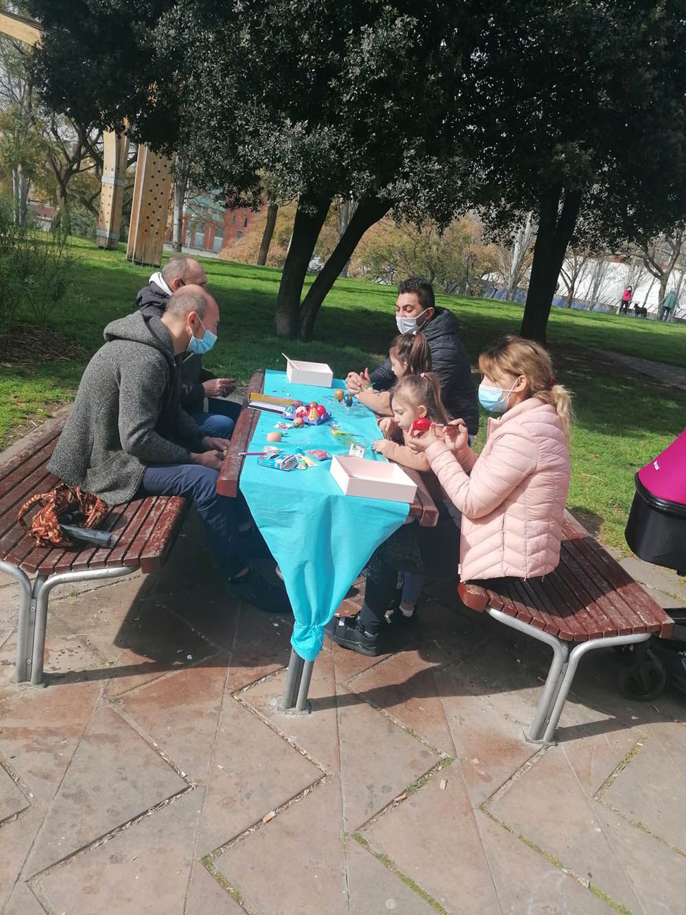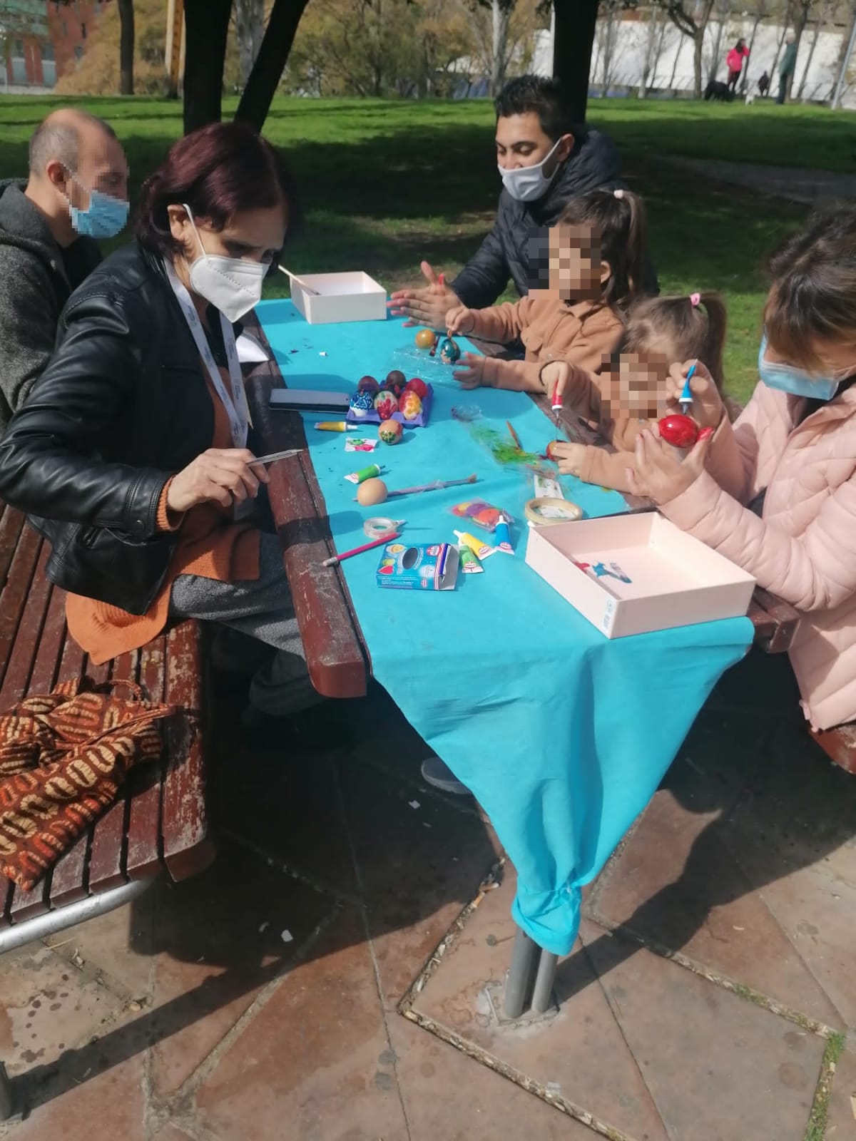 Els nens i els adults van pintar els ous amb alegria. Aquests tallers uneixen en comptes de separar-nos i trenquen fronteres que sembla que tant ens separen. Feliç Pasqua i primavera en aquests temps de pandèmia però sempre amb prudència i responsabilitat i cuidant molt les mesures sanitàries.